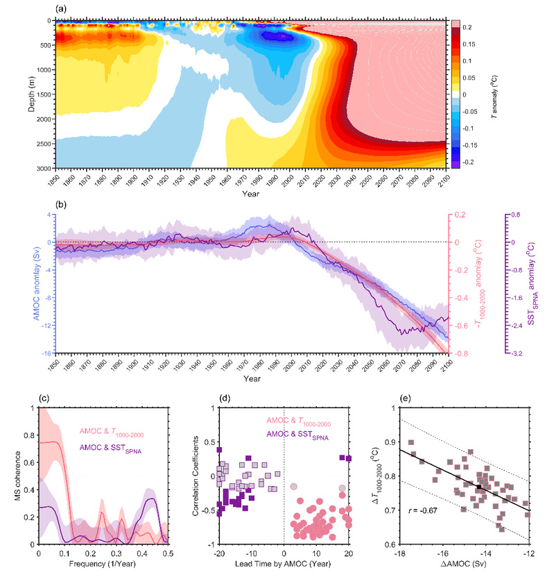 Ren, Q., Xie, S.-P.*, Peng, Q., Li, Y.* & Wang, F. (2025). Equatorial Atlantic mid-depth warming indicates Atlantic meridional overturning circulation slowdown. Commun. Earth Environ. 6, 819, https://doi.org/10.1038/s43247-025-02793-1